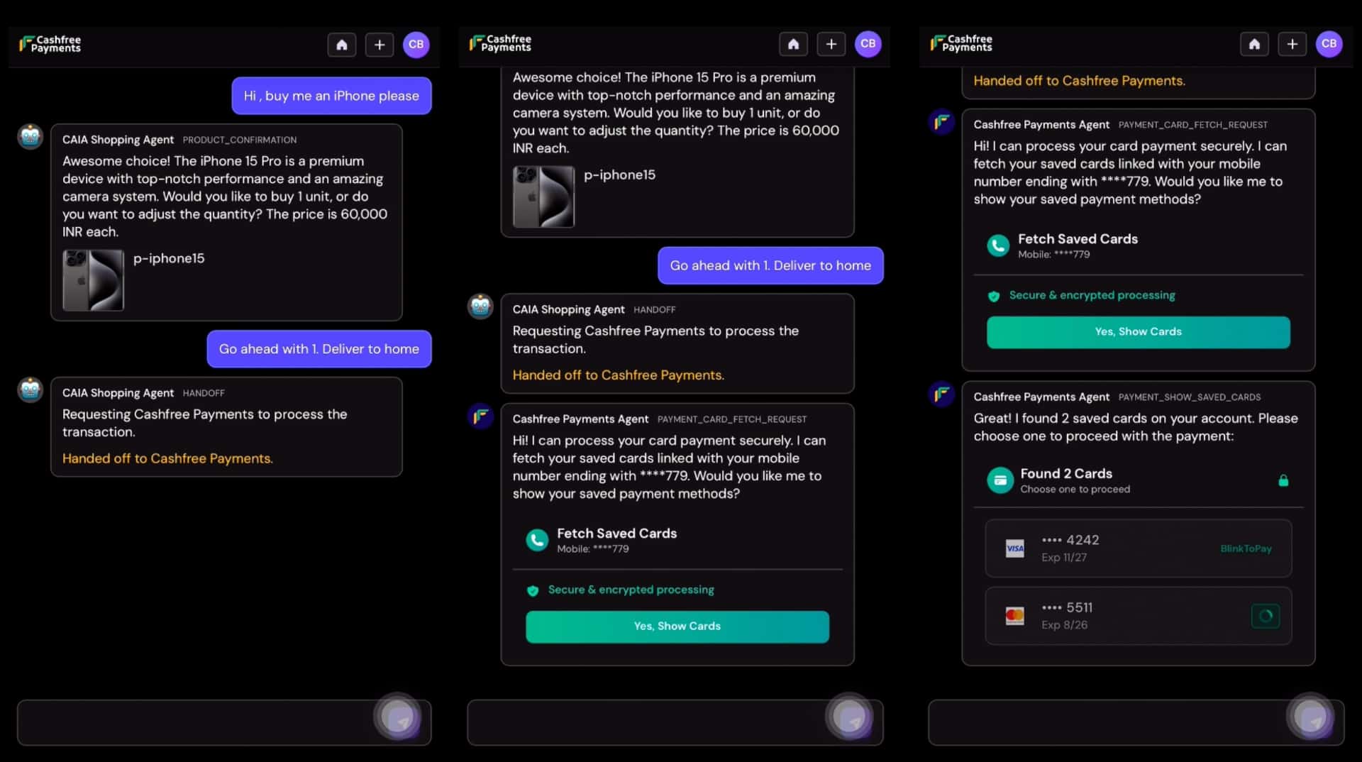 除Razorpay外,在线支付初创公司Cashfree Payments也推出了智能支付模块MCP,帮助商户直接通过购物代理处理支付。该方案支持包括银行卡和UPI在内的所有主流支付方式。不过,使用Cashfree服务的商户需自主开发购物代理以对接MCP系统。